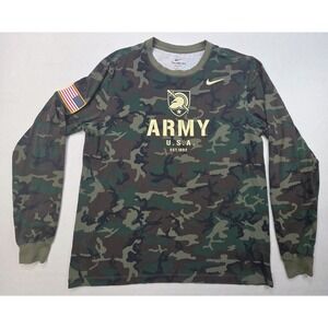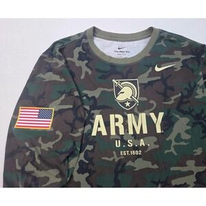 US Army Black Knights Nike Camo Shirt Mens L Flag Patch Long Sleeve