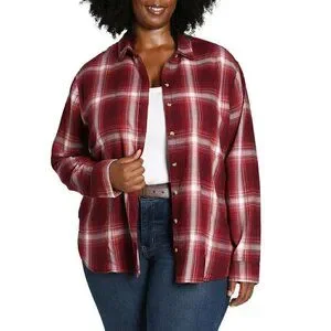 NWT Jachs Girlfriend Super Soft Flannel 2 Side Pockets Plaid Button Front Shirt