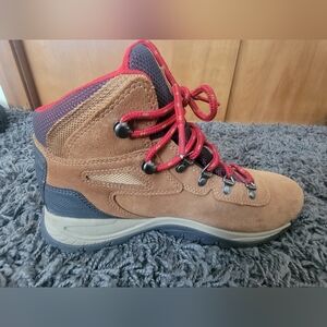 Columbia boots in brown with striking red accents. Perfect for hiking.