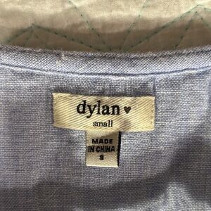Soft light blue fabric featuring a 'dylan' brand tag. Ideal for crafting or design projects.