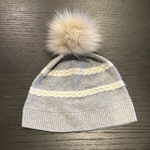 Talbots Women’s Cable Knot Cap with Pom Pom Stripes Great Condition