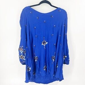 ✅ Free People - Oxford Embroidered Mini Blue Dress SIZE SMALL