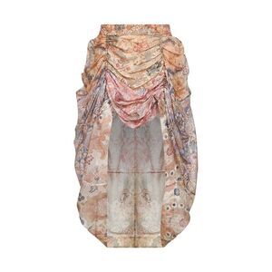 •Back invisible zip closure •Mid-rise waist •Ruched gathered detailing at centre front and back •Spliced pattern •Asymmetric high-low hem •Multicolor floral print •Color: multicolor •55% Linen, 45% Silk •Made in Extra EU
