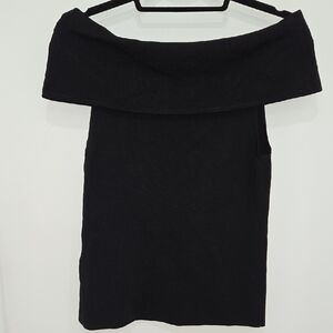 White House Black Market Off Shoulder Sleek Minimalist Sleeveless Black Sweater