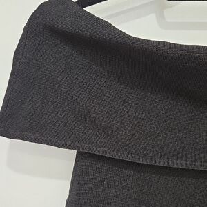 White House Black Market elegant off-shoulder sweater. Sleek black design. Ideal for any occasion. Brand label is unsewn on one side, but otherwise in great condition.