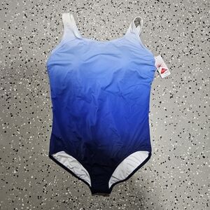 NWT Blue Ombre Women's Tugless Low Leg One Piece Swimsuit - Lands End Size 20W