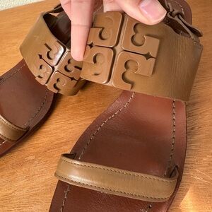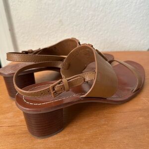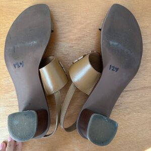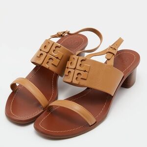 Tory Burch Beige Leather Eleanor Block Heel Slingback Sandals Size 9.5