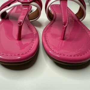 J. McLaughlin Nixi Pink Patent Leather Thong Style Flat Sandals Size 6.5 NWT