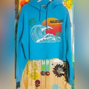 ✨RARE✨Aviator Nation “Palm Tree Music Festival Oahu Hawaii” Teal Blue Hoodie