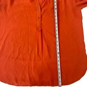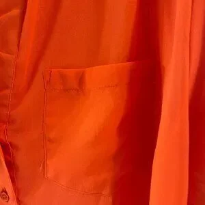 The Gold Drama women's orange transparent blouse with three-quarter sleeves in size 1X is a stylish and versatile top perfect for casual occasions during the summer and spring seasons. Made of lightweight chiffon fabric, this blouse features a V-neckline, pullover closure, and a basic solid pattern in a vibrant orange color. The regular fit and plus size make it a flattering and comfortable option for women who love a touch of metal-themed fashion. Hand wash only to maintain the quality of this elegant and trendy blouse from the brand Drama Gold.