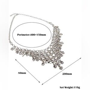 【SPECIFICATION】Crystal/Rhinestone Statement Necklace. Chain Length: 400-550 mm or 15.75-21.65 inch; Width: 80 mm or 3.15 inch; Weight: 119 g or 0.26 lb.