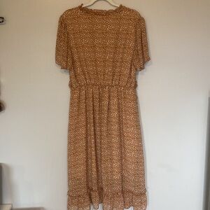 Kirundo XL Tan White pattern midi dress with flowy ruffles Pretty and light. EC