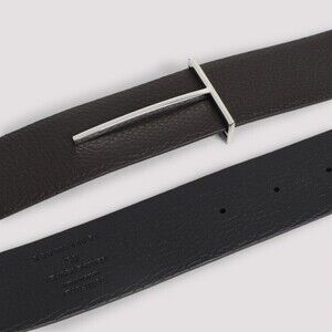 The Tom Ford belt epitomizes sophisticated minimalism, crafted from 100% textured calf leather. Its width features a smooth, rectangular metallic buckle shaped like the letter T, offering a subtle yet unique accent that enhances its luxurious appeal. Perfect for elevating any ensemble, this belt seamlessly merges functionality with timeless style.