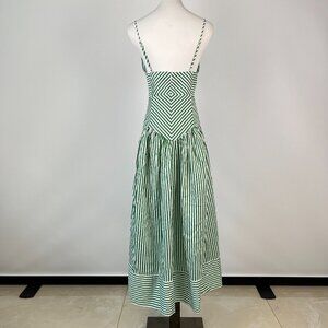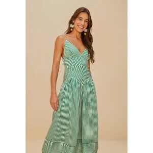 NWOT Farm Rio Stripe Cotton Sleeveless V-Neck Drop-Waist Midi Dress Size M