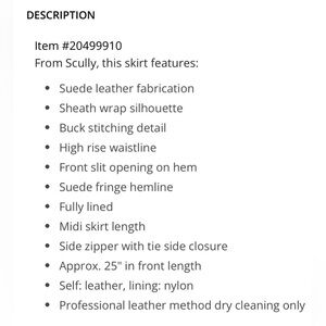New with tags Scully black fringe leather/suede midi skirt.