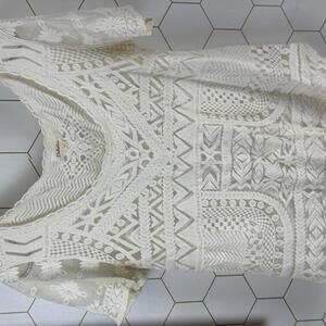 Deletta by Anthropologie Cream Lace Inlet Short Sleeve Top - Size - Medium
