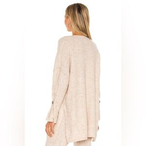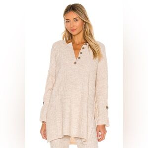 Cozy up in chic style with this slouchy sweater from Free People, a soft ribbed-knit design finished with a sleek V-neck and decorative buttons.