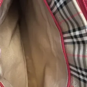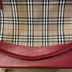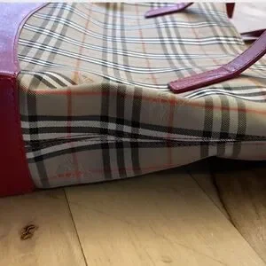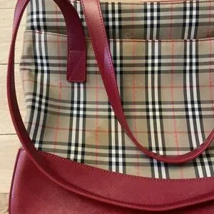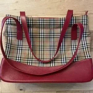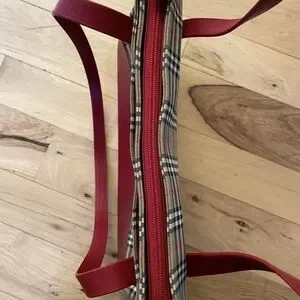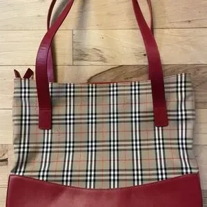 Vintage Burberrys Nova Check Tote Red Leather Trim
