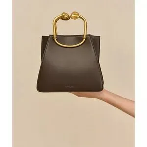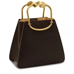 Brand new, tags and dust bag included inside of bag. A sculptural mini bag in smooth leather with a curved golden top handle.