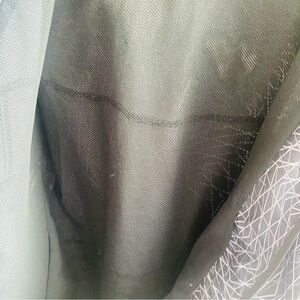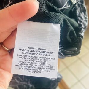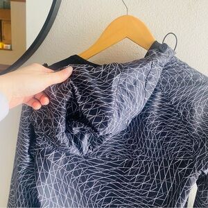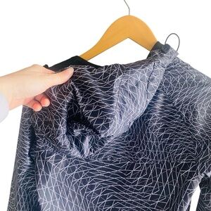 Gray, lack and white hooded windbreaker. Full zip. EUC. Size XS measures shoulder to hem 27”, armpit to armpit and waist 17”