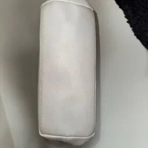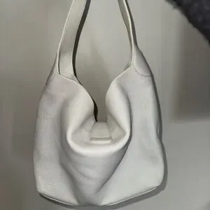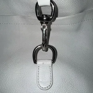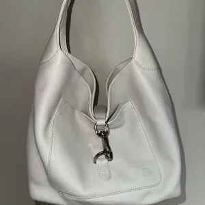 Chic white leather hobo bag with a stylish clasp. Perfect for everyday elegance.