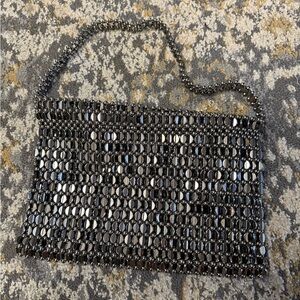 Zara Black and Silver Beaded Shoulder Bag