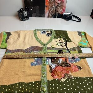 Storybook Knits Sequin Scenic Cardigan - Green and Cream