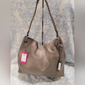 New With Tags Vince Camuto Nadja Hobo in the gorgeous neutral shade Shadow Grey. Crafted in soft pebbled leather with stylish braided shoulder straps and silver-tone hardware.
