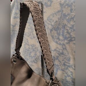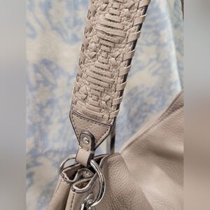 Nadja hobo, Vince Camuto leather bag, shadow grey purse, braided strap handbag, slouchy hobo bag, designer shoulder bag, pebbled leather purse, neutral everyday bag