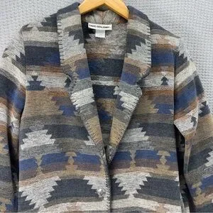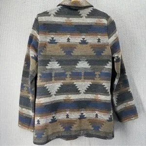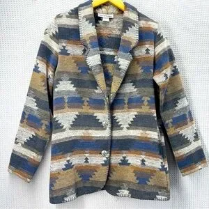 Vtg David Benjamin Southwestern Woven Jacket Coat Women Sz 8 Two Button Tribal