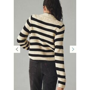 Anthropologie Maeve Striped Ribbed Cardigan Sweater Cream Black Gold Button S