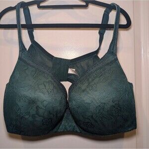 Cacique Lane Bryant 46DD Dark Green Lace Balconette Bra Underwire Lightly Lined