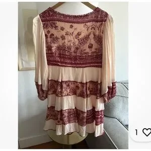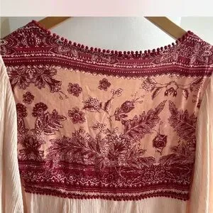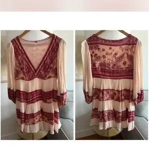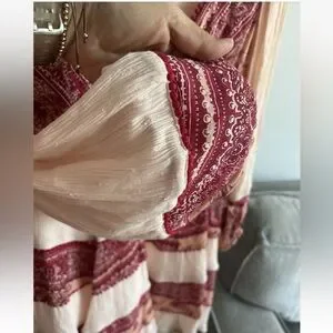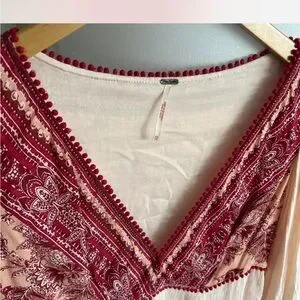 Free People Pink Red Babydoll Boho Cottage Festival Mini Dress XS🌸