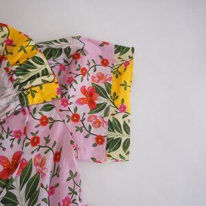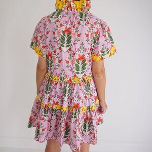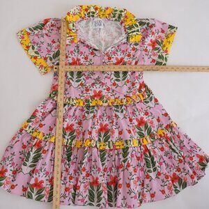Alden Adair Pink Floral Button Front Tiered Ruffle Short Sleeve Cotton Dress S