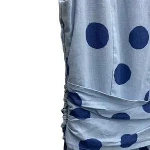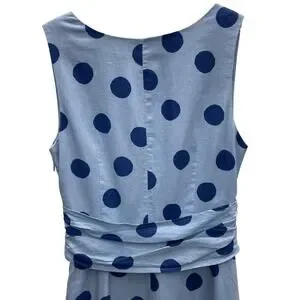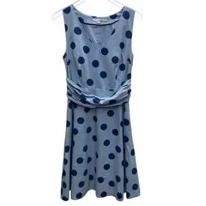 Boden Lois Linen Blend Blue Polka Dot Sleeveless Fit & Flare Dress Size 6R