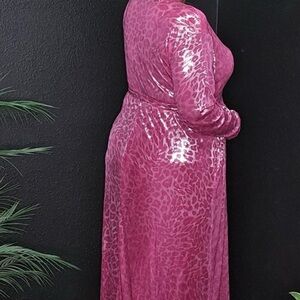 Fuschia Metallic Shimmer Lea V Neck Long sleeve Maxie Dress New Size L Step out in style with this elegant pink leopard maxi dress. Perfect for any occasion, it offers a blend of fashion and comfort.