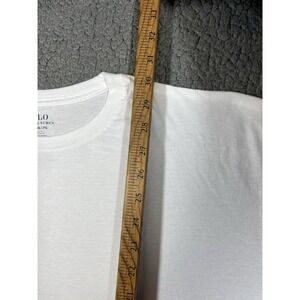 This lot of 2 Polo Ralph Lauren classic fit crew neck t-shirts in size 2XL are made from 100% cotton knit fabric. The solid white t-shirts feature short sleeves and are machine washable for easy care. With a classic fit and crew neckline, these t-shirts are perfect for men looking for a comfortable and versatile wardrobe staple from the renowned Polo Ralph Lauren brand. Made in India, these t-shirts are part of the Ralph Lauren Polo product line, adding a touch of style to any outfit.