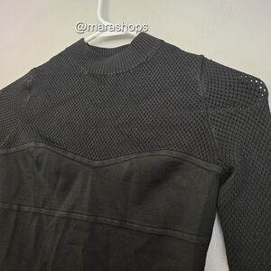 TAG: Fleur Du Mal Black Pointelle Knit Long Sleeve Mock Neck Bodysuit