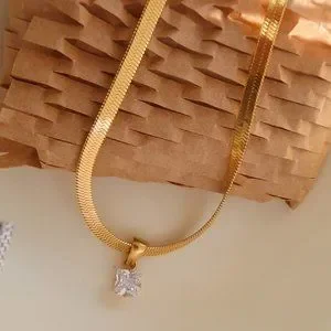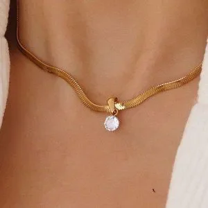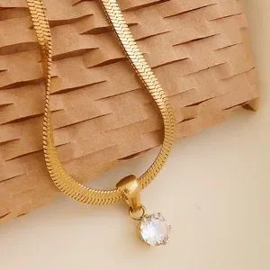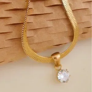 #NEW 18K Gold Plated 2CT Solitaire Diamond Flat Herringbone Necklace
