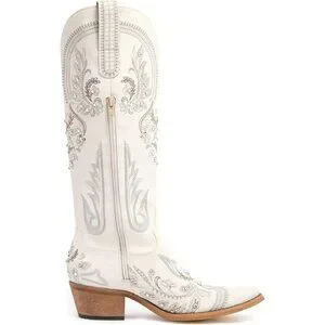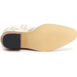 Women's Cream Leather Embroidered Rhinestones Pointed Toe Western Cowgirl Boots