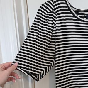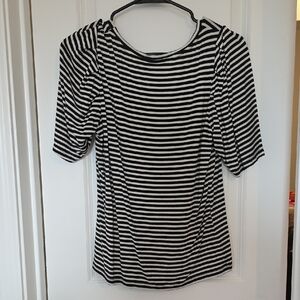 Stylish monochrome stripes. Slightly pleated shoulders so it can be dressed up or down.