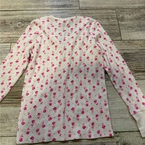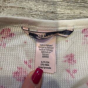 Victoria Secret White and Pink Floral Long Sleeve Henley Long Pajama Top