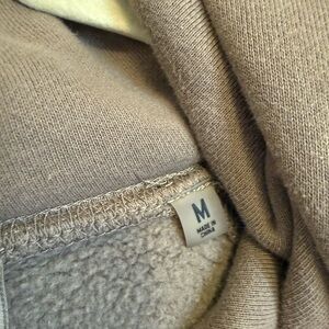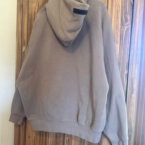 The Fear of God Essentials Hoodie in Desert Taupe is a RELAXED- Medium.