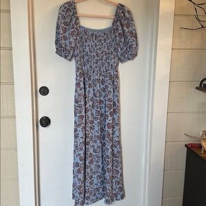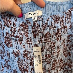 madewell Smocked Puff-Sleeve Dress Saylor Floral Light Pool blue NWT size 0.