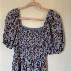 madewell Smocked Puff-Sleeve Dress Saylor Floral Light Pool blue NWT size 0