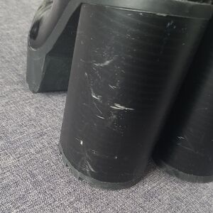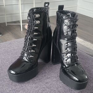 Elevate your look with these glossy black lace-up boots. Ideal for a chic, modern style. Worn 3 times