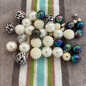 A vibrant collection of assorted beads. Includes pearl, leopard print, and iridescent designs. Perfect for crafting and jewelry making.