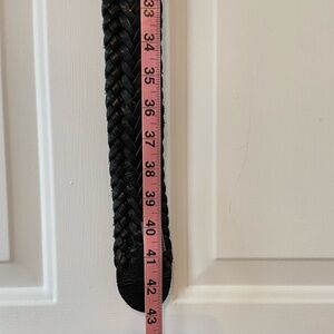 This Black Braided Leather Belt is a stylish accessory for women, perfect for adding a touch of sophistication to any outfit. Made in India with high-quality leather and featuring a solid black color, this belt is perfect for everyday wear. The braided design and brass buckle accents add a unique touch to the classic style, making it a versatile piece that can be worn with a variety of ensembles. Ideal for a size M waist, this belt is a must-have for any fashion-forward woman looking to elevate her wardrobe.
