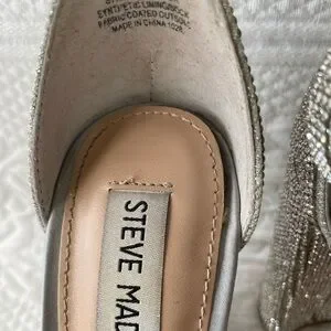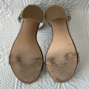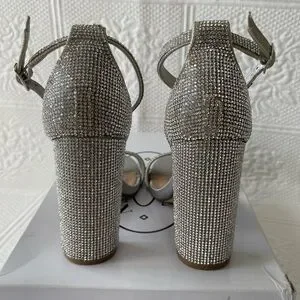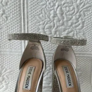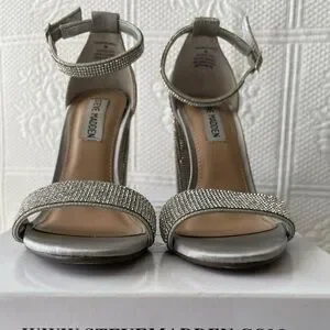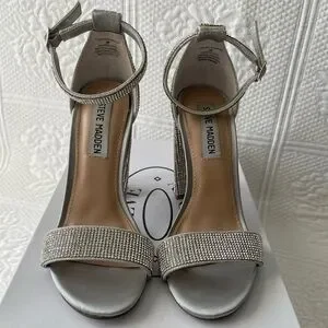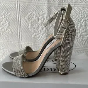 Steve Madden Carson-R Crystal Rhinestone Ankle Strap Open Toe Heels Silver 6