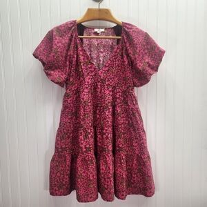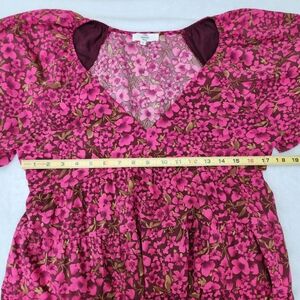 Entro floral Print V- Neck Bubble Sleeve Mini Dress Burgundy Size M